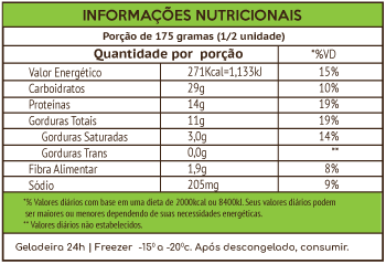 MODO DE PREPARO: Forno: Retire a tampa, coloque a bandeja de alúmínio em um refratário e leve ao forno. Temperatura sugerida: 180C